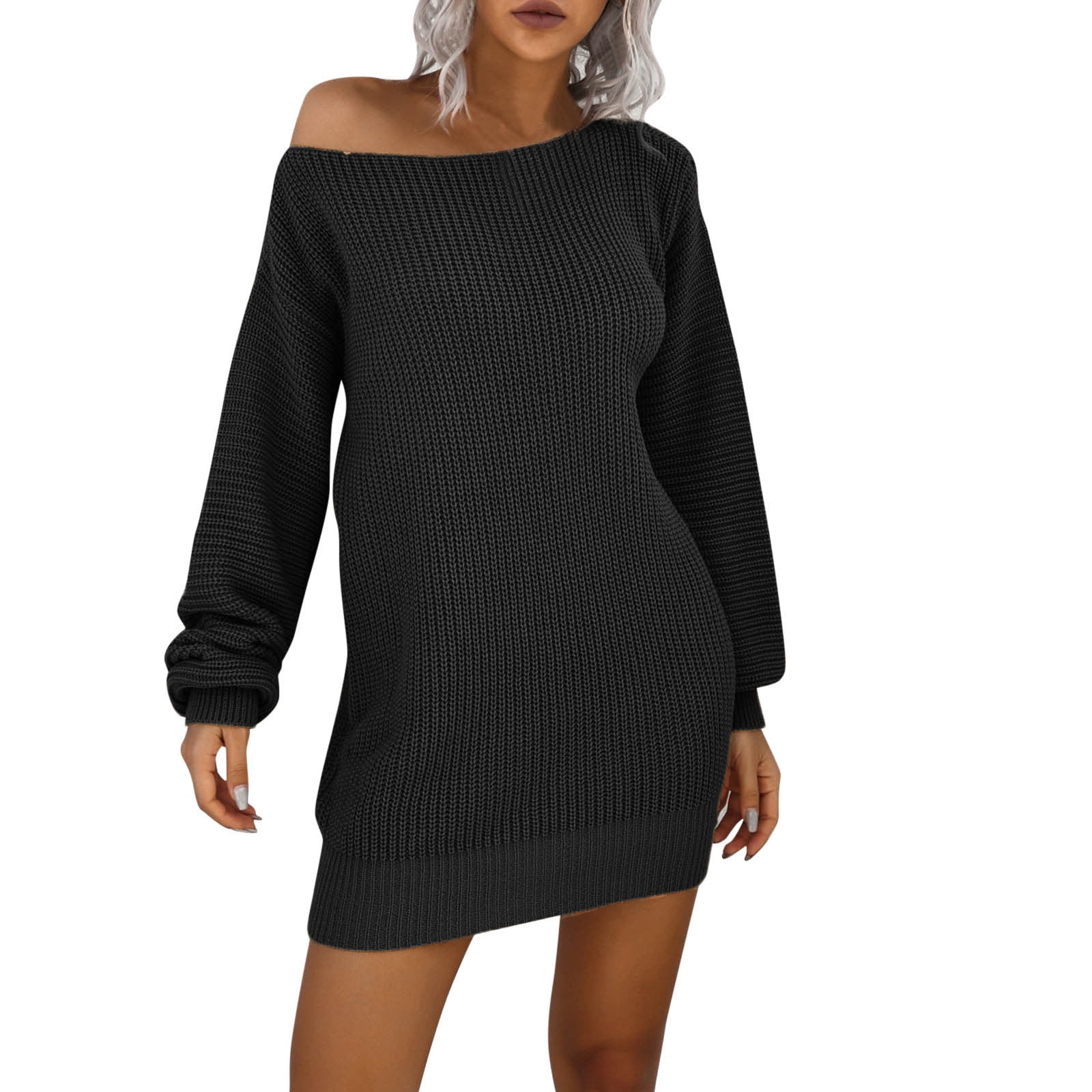 Jdefeg Formal Sweaters For Women Women Sweater Dress Off Shoulder Knit Long Pullovers 12 Year Old Sweaters For Women Knitting Wool Black S Walmart Com